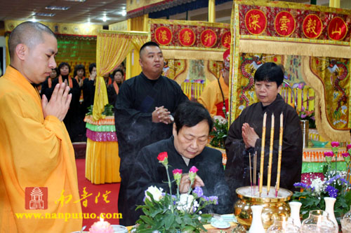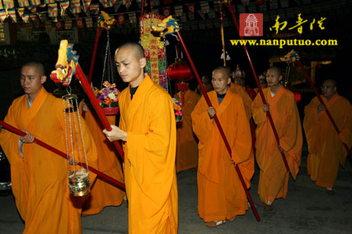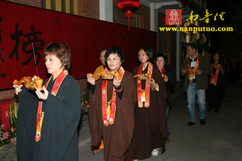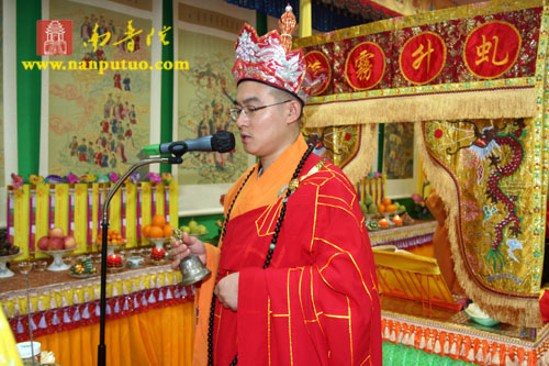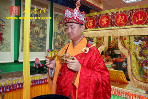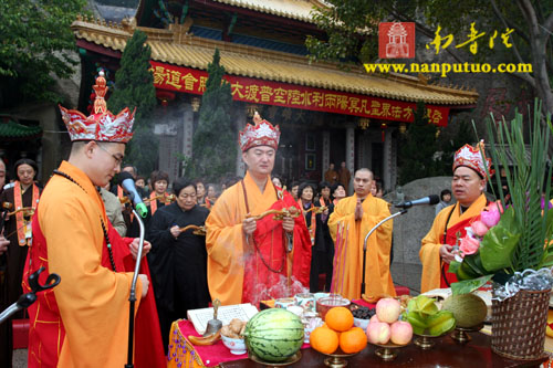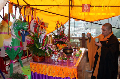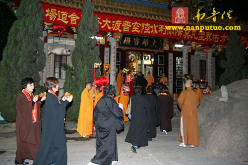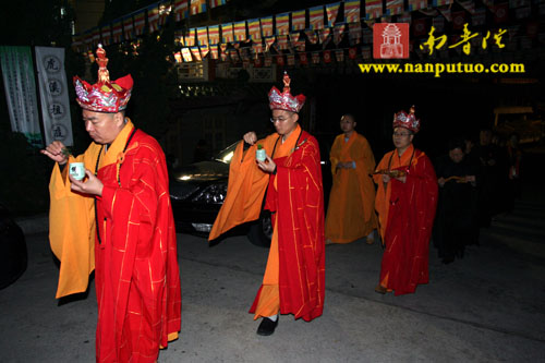 傍晚5时30分,敦请传航法师等五大士于大坛施放瑜伽焰口,普资六道众生,利益一切含灵。