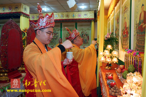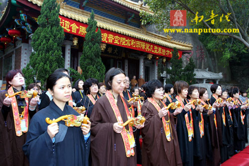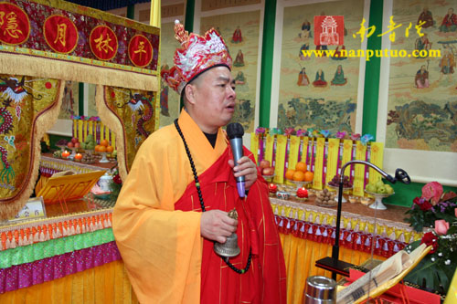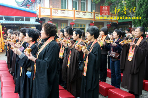 今日有新加坡光明山普觉禅寺,为广结法缘、种植善因,敬设上堂大斋供众,仪式于上午10时举行,恭请新加坡光明山普觉禅寺方丈广声大和尚上堂说法。
