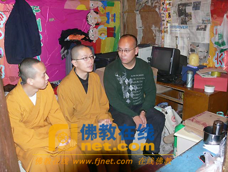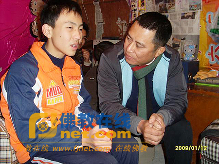 近日,重庆市华岩文教基金会资助对象盲童王一木顺利通过面试,成为中国残疾人艺术团一员。2009年2月25日,基金会秘书长心河法师与工作人员看望盲了童王一木的家人,与一木的父亲交谈了解一木的北京的生活情况。