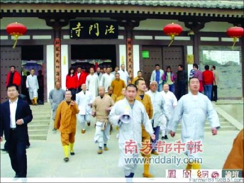 由于不满景区开发商在寺院的山门及主要出入通道修建围墙,20日下午,法门寺僧侣合力推倒围墙,并关闭山门,直至21日上午才重启山门。