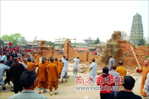 陕西法门寺法师不满景区开发商所建围墙 将其推倒