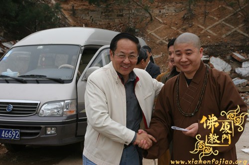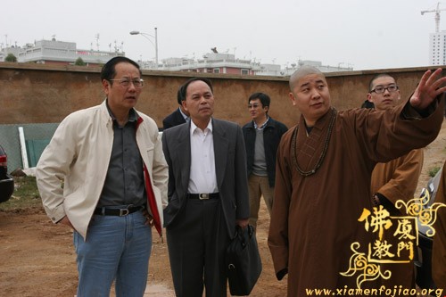 今天下午,厦门市人大侨务外事委员会陈玉东主任在市民宗局局长曾文瑛、副局长蔡永华的陪同下到前埔磨心山视察妙释寺易地重建工程的进展情况。