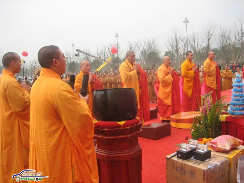 在灵山梵宫前隆重举行了吉祥车祈福洒净仪式。在现场嘉宾的共同见证下,论坛指挥部礼请了江苏省佛教协会副会长、无锡市佛教协会会长、祥符寺方丈无相法师等五位高僧携僧众三百多人为120台贵宾专用车主持祈福洒净仪式。