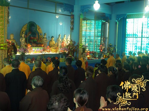 厦门石室禅院于3月21日至3月28日举行精进药师念佛七,礼请本寺住持忠明法师为主七和尚,22位法师分成七组24小时不间断领众称扬药师如来圣号,祈愿国泰民安,风调雨顺,佛日增辉,法轮常转。