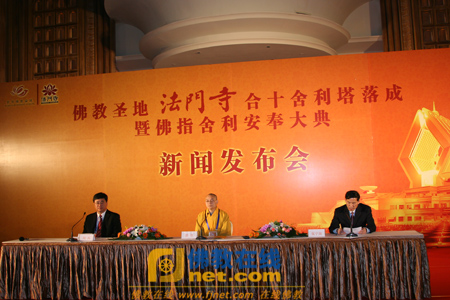 国家宗教事务局局长叶小文、中国佛教协会副会长兼秘书长、陕西扶风法门寺方丈学诚法师出席了发布会。