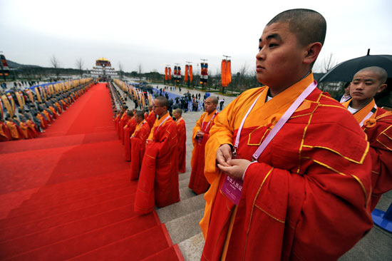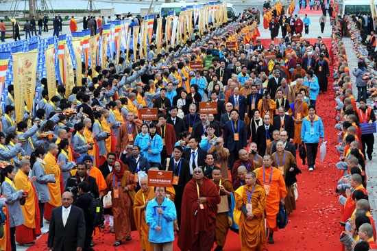 3月28日,由中国佛教协会、国际佛光会、香港佛教联合会和中华宗教文化交流协会联合举办的第二届世界佛教论坛在江苏无锡开幕,近50个国家和地区的1700多位高僧大德、著名佛教学者和社会各界人士参加论坛开幕式。