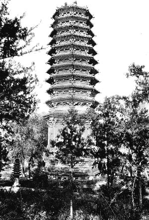 云居寺始建于隋末唐初,已经有1400年的历史了,占地7万多平方米。南塔、北塔各占地100平方米左右。北塔1972年和1989年两次重修。南塔始建于辽天庆七年(1117年),因塔之南埋藏有大量石经,亦称“压经塔”。据记载,该塔为八角十一层密檐砖塔,立于高大方形平台之上,1942年被侵华日军的炮火炸毁了,只留下八角形塔基。
