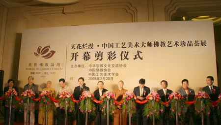 2009年3月20日,建国60年以来,档次最高、规模最大、品类最丰富、技艺最精湛的佛教文化艺术专题展览“天花烂漫·中国工艺美术大师佛教艺术珍品荟展”在江苏无锡灵山梵宫隆重开幕。