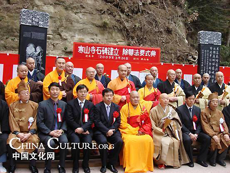 为进一步加强中日两国的佛教交流,近日,江苏省苏州寒山寺向日本镰仓建长寺赠送了《枫桥夜泊诗》和《寒山拾得像》两座石碑。2009年3月24日,落成仪式在建长寺隆重举行,寒山寺方丈秋爽法师、苏州市宗教局蒋行顺副局长出席落成仪式并与建长寺住持吉田正道、日本禅画家协会会长平冈嘉卫门、中国驻日本使馆公使衔参赞张爱平等为石碑揭幕,来自日本全国各地的禅画家协会会员和寒山寺、建长寺僧侣近200人参加了揭幕仪式。