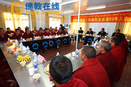 2009年3月25日,在西藏百万农奴解放纪念日来临之际,哲蚌寺举行学习《西藏民主改革50年》白皮书座谈会。