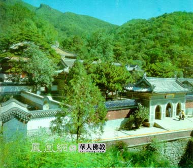 潭柘寺位于北京西郊门头沟区东南部的潭柘山麓,距阜成门41公里。潭柘寺坐北朝南,背倚宝珠峰,周围有九座高大的山峰呈马蹄状环护,这九座山峰从东边数起依次为回龙峰、虎距峰、捧日峰、紫翠峰、集云峰、璎珞峰、架月峰、象王峰和莲花峰,九座山峰宛如九条巨龙拱卫着中间的宝珠峰,规模宏大的潭柘寺古刹就建在宝珠峰的南麓。高大的山峰挡住了从西北方袭来的寒流,使潭柘寺所在之处形成了一个温暖、湿润的小气候,因而这里植被繁茂,古树名花数量众多,自然环境极为优美。