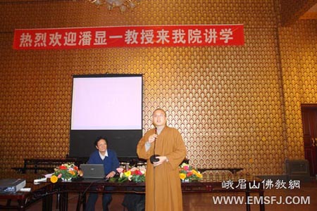 2009年3月16日上午,峨眉山大佛禅院举办《宗教与道德》佛学讲座,邀请四川大学哲学博士、宗教学博士生导师、四川峨眉山佛学院客座教授潘显一教授主讲。