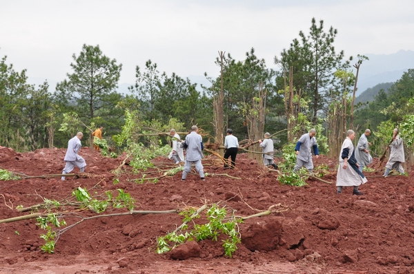 3月11日下午,在梅州市宗教局局长张国金等领导的带领下,梅州千佛塔寺主持明慧法师发动全寺僧众和各界人士,来到千佛塔寺扩建工程规划的土地上种下了数百棵绿树。为实现梅州“绿色崛起”和保护生态环境贡献力量。