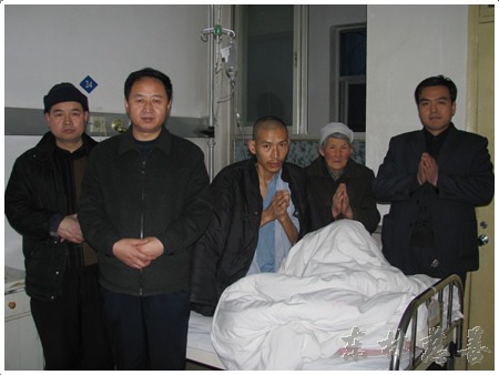 2009年2月22日星期日早晨东林慈善功德会志愿者郝师兄接总部的安排,和求助者罗居士取得联系,得知王杰现因患肺结核住平凉市第一人民医院感染科。下午我和郝师兄、邓师兄前往距四十里路的平凉市第一人民医院探望王居士。