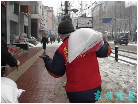 2008年初,九江发生了50年难遇的雪灾,由于大桥结冰的缘故,长江大桥被封锁,导致大桥上滞留了许多车辆,正在筹建期的东林慈善功德会准备了几千元的食品准备到长江大桥发放,在晚上十一点多,张佳乐等爱心之家的志愿者冒着大雪,踩着厚厚的积雪来到长江大桥,协助功德会发放物质,随后他们又积极参与功德会为灾民发放棉被、春节送温暖等活动的调查、分发工作。即使在那样的寒冬腊月,在那样的道路不通,雪花纷纷的日子里,张佳乐所带领的帮扶队的志愿者依然笑容灿烂,非常开心地跟随着张佳乐参与功德会的各种慈善活动。因为由张佳乐等爱心志愿者的帮助,东林慈善功德会在2008年初志愿者队伍尚未组建起来时的救灾工作得以顺利完成。