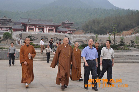 向茂林书记与圣辉法师一行首先到寿佛寺察看选址及修复建设规划,然后在资兴宾馆听取了郴州市委常委、资兴市委书记李评关于寿佛寺修复建设工程情况介绍。圣辉法师谈到:寿佛寺历史底蕴深厚,修复建设工程一定要按照规划,分步实施并做好寺院的配套设施。