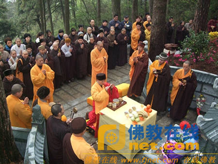 南岳佛教协会南台寺、福严寺等寺院,组织大众在祝圣寺明真长老及南台寺宝昙长老塔前,举行了清明扫塔报恩法会。