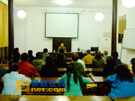 7日上午,在观云法师带领下,《广论》学习班参观了西园寺天王殿、大雄宝殿、西花园及三宝楼建筑。随后又参观了寒山寺、灵岩山寺、报恩寺、重元寺等佛教圣地。7日晚,戒幢佛学研究所所长济群法师就如何学好菩提道次第做了扼要的开示。