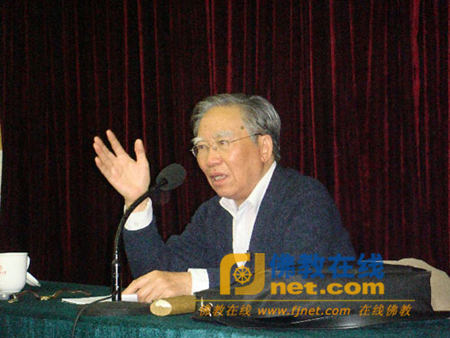 讲座上,方立天教授讲到中国化的佛教是属于中国自身的佛教,与本源的印度佛教相比,具有重自性、重现实、重禅定修持、重顿悟、重简易、重宽容的六大自身特点。中国佛教与印度佛教相比,更面向现实,民众对佛的笃信更多的源自于对解决现实问题的需要。