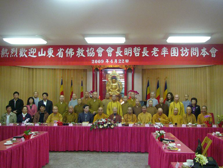2009年4月22日,为增进两岸佛教的法谊,山东省佛教协会会长明哲长老一行12人应国际斋僧功德会净耀法师邀请抵达台湾进行参访。