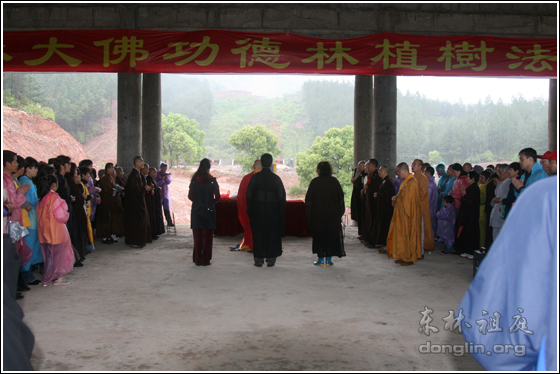 2009年4月19日来自全国各地的植树功德主及东林寺慈善功德会的志愿者汇聚祖庭,参加东林大佛功德林植树法会。