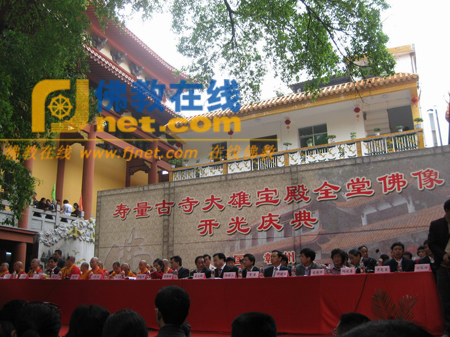 2009年4月13日上午,江西省赣州市寿量古寺隆重举行大雄宝殿全堂佛像开光庆典法会。中国佛教协会发电祝贺。