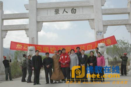 白人岩寺众居士打出横幅欢迎廓妙法师