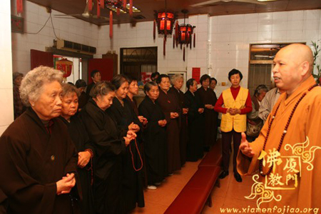 定恒法师在仪式上开示说:佛教助念团的成立是厦门佛教的大事、喜事,意义非常重大。助念团的莲友们要发长远心、坚固心、慈悲心和包容心,克服种种困难帮助需要帮助的人们。把助念工作做的成功、做的圆满。