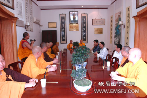 省宗教局、省佛协领导时时关心、关注着传戒法会的顺利进行。在昭觉寺思德堂,杨伯明副局长、永寿大和尚等亲切慰问了引礼寮众师承,赞叹他们为了培养后学,传佛大戒、不辞辛劳、如法如律。并希望他们继续发心,圆满传戒胜会,成就殊胜功德。
