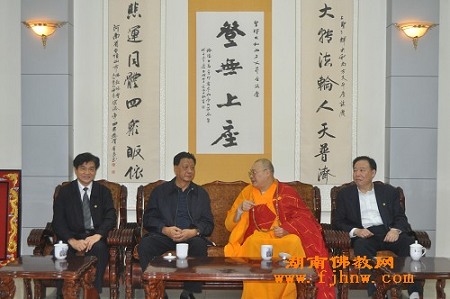 2009年4月19日上午,原第十届全国政协王忠禹常务副主席在省政协阳宝华副主席、长沙市政协董学生主席、长沙市宗教局姚仁智局长的陪同下到长沙麓山寺视察。麓山寺方丈圣辉大和尚在山门迎接王忠禹副主席一行,并在大雄宝殿诵经:祈祷世界和平、国家繁荣昌盛、人民幸福、社会和谐。随后,圣辉大和尚陪同王忠禹副主席一行参观了寺院殿堂、佛学院教室、图书馆,在寺院接待室向王忠禹副主席介绍了麓山寺全况并代表寺院向王忠禹副主席赠送了礼品。王忠禹副主席对麓山寺的悠久历史和庄严的殿堂、僧人修学的严谨道风和佛学院的良好学风表示了赞叹和肯定。特别勉励大家为经济社会的发展、为构建和谐社会,建设全面小康社会。为佛教事业的积极向上,做出更大的贡献。