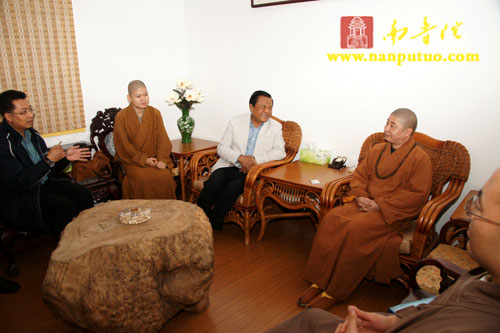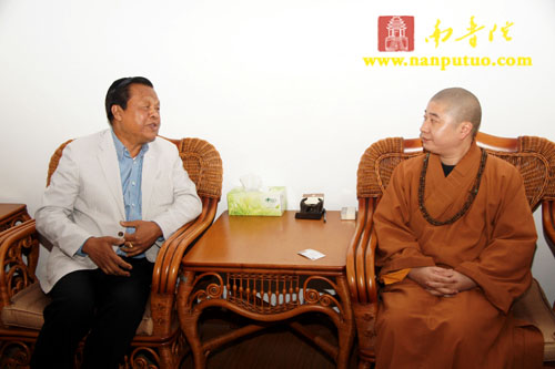 4月6日下午4时40分,泰中文化经济协会会长威七·雅乐上将来访我寺,我寺方丈则悟大和尚在方丈楼热情接待上将一行,并进行了亲切会谈。谈话间,双方均表示希望泰国佛教与南普陀寺将更进一步加深友谊和相互交流。