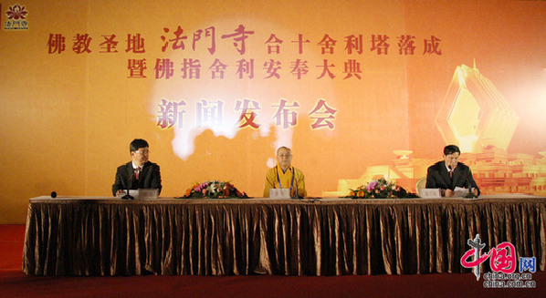 法门寺即将迎来佛指舍利安奉大典,并举行盛大安奉仪式。出席新闻发布会的有国家宗教局局长叶小文,陕西法门寺方丈、中国佛教协会副会长学诚法师。