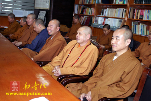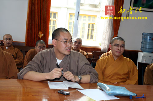 4月21日下午2时30分,南普陀寺方丈则悟大和尚在教务处办公室主持召开常住执事会议。我寺首座了法法师、首座慧然法师、首座兼监院界象法师、西堂传明法师、后堂定恒法师等班首执事参加了会议。