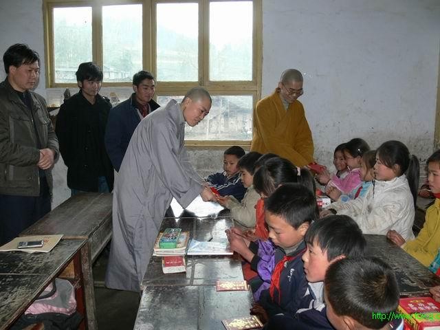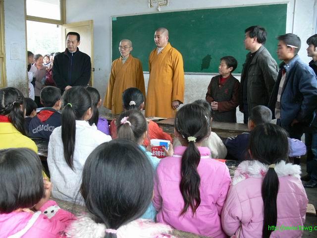 中国佛网讯 4月3日早上7点30分 往黔江贫困小学送衣服的车从重庆华岩寺出发,由重庆华岩寺来圣法师和德慧法师带队,经过了410多公里,下午4点,终于到达了黔江县水田乡石郎小学,由黔江县民族宗教委员会马科长,黔江县水田乡向乡长,黔江县武陵仙山香山寺住持弘藏法师亲自接待两位法师,老师、同学们将一包包衣服抬进了简陋的教师办公室,此时,在他们的脸上漏出了开心的笑容。在捐赠仪式上,首先由代表老师介绍了学校的情况,学校共两百多名学生,大多数家庭都属于贫困家庭,非常感谢华岩文教基金会为学校送来的爱心。随后马科长、向乡长也发表了讲话。来圣法师在会上表示,重庆华岩文教基金会理事长道坚法师非常重视贫困山区的教育事业,学校可以将贫困学生的详细资料递交华岩文教基金会,我们会进行针对性资助。下午5点,在弘藏法师的带领下,来到了黔江县武陵仙山香山寺。
