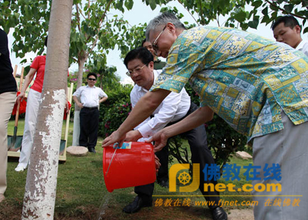 中央政治局委员王兆国等到南山寺参观 亲植菩提树