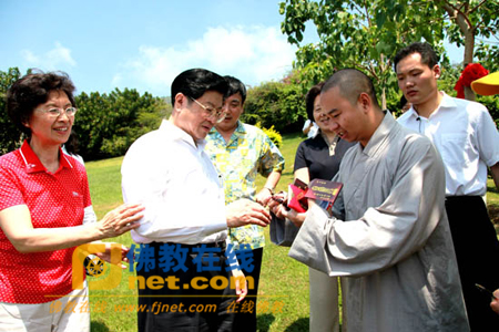 王兆国一行在南山寺的菩提园内种植了一颗菩提树,并十分关心的了解了南山寺僧众的生活情况。在菩提树下,王兆国委员还与法师们就佛教理论和佛教历史展开了亲切的交流,并表示希望南山寺的法师努力精进研习佛教经典,让更多的人了解佛教、学习佛法。王兆国委员特别盛赞了佛教在21世纪时期为构建和谐社会起到的积极作用,并希望法师们要发扬佛教的慈悲精神努力为地方和国家的安定、和谐做贡献。最后,昌厚法师代表南山寺向王兆国委员一行赠送了佛教念珠和《南山梵音》季刊。(文:智贤)