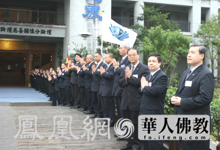 慈济是台湾佛教慈济慈善事业基金会的简称。43年前,青年时代离开富裕家庭皈依佛门的证严法师,秉承佛陀“无缘大慈,同体大悲”的信念,于台湾花莲县创立了慈济。感恩于“善的循环”,日积月累的慈济,已涉足慈善、医疗、国际赈灾等八大志业。上午9时许,数百位慈济人,以他们走遍全球的招牌式装束,夹道欢迎17个国家和地区187位代表光临他们的板桥道场。一天内,行走在板桥道场的每一个角落,不管是过道,还是厕所,他们总能在你张望寻觅不解的时刻,笑容可掬地靠近你。第二届世界佛教论坛是两岸三地四个宗教团体主办的,台湾的主办者是星云法师任总会长的国际佛光会,他们和慈济、法鼓山、华梵大学等其它佛教组织共同承办8场分论坛。