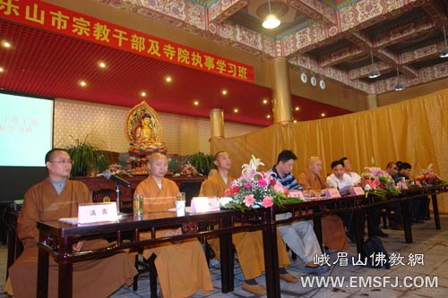4月20日上午,由乐山市宗教局、乐山市佛教协会主办,峨眉山佛教协会、四川峨眉山佛学院协办的“乐山宗教干部及寺院执事学习班”在峨眉山大佛禅院新近落成的普贤文化中心举行了隆重的开学典礼。