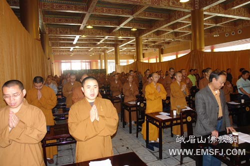 最后,开学典礼在全体与会人员的《三宝歌》声中结束。本次学习班以提高乐山市宗教干部及寺院执事佛学素质、政策水平及管理能力为宗旨,为期五天,将邀请我省教内外专家、学者、法师授课。