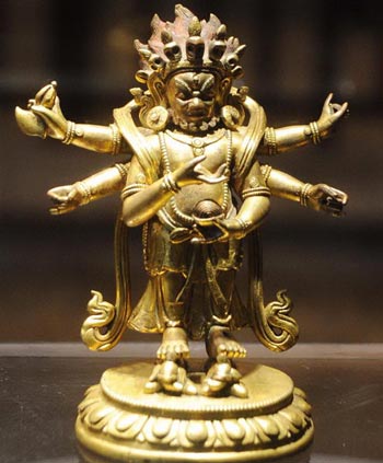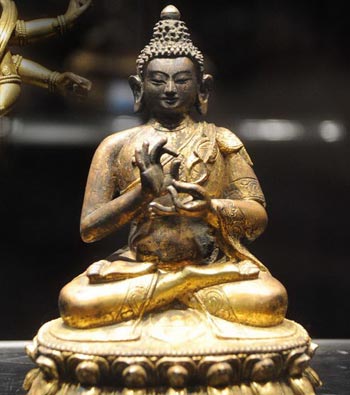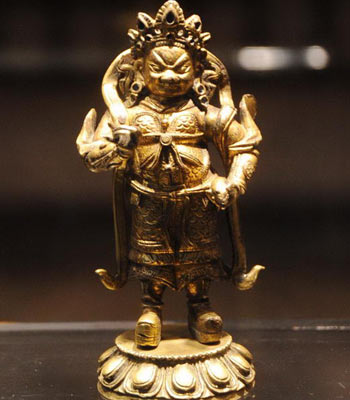 4月6日上午,“‘鎏金岁月-盛世风范’闽台首次鎏金铜佛精品展暨明清铜佛名家品鉴”活动在位于福建省福州市衣锦坊的明清艺术博物馆开幕。60多座极具文物价值、艺术价值和市场价值的古代鎏金铜佛精品,首渡台湾海峡,为两岸人民祈福。这批鎏金铜佛均是明清真品,多为清代中期以后内蒙古地区的藏传佛教佛像。据悉,这也是台湾民间文物首次成批量来到大陆展出。
