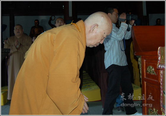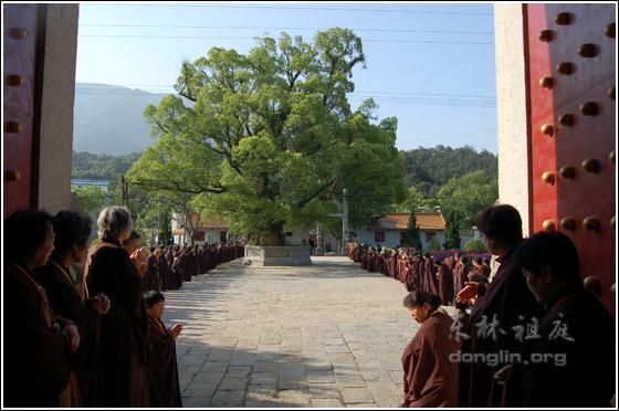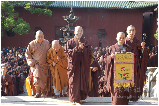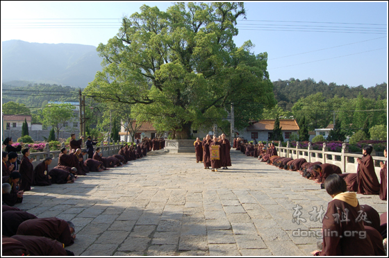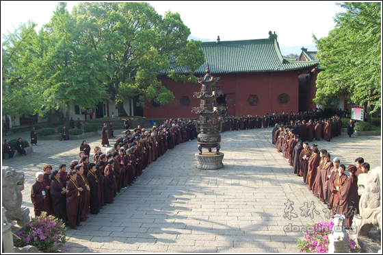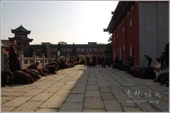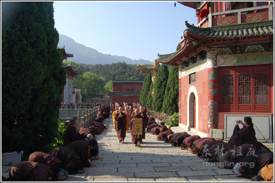 4月26日上午,东林寺方丈传印大和尚从北京返东林寺,近两千名佛弟子由大雄宝殿一直到山门列队迎请。这次传印大和尚将在东林寺主持在家菩萨戒传授法会,为戒和尚。 |