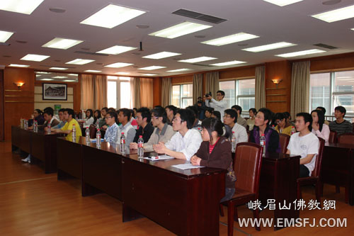 4月13日下午,峨眉山佛教协会会长永寿大和尚、副会长传智法师、果正法师以及四川省统战部副部长、四川省宗教事务局局长王增建、四川省宗教事务局一处处长周晓鹰一行来到四川师范大学,看望峨眉山菩提心互助功德会资助的贫困大学生,并发放捐赠金。此次峨眉山佛协菩提心互助功德会2009年春季走进四川师范大学助学活动共计向50名受助学生发放助学金5.4万元。