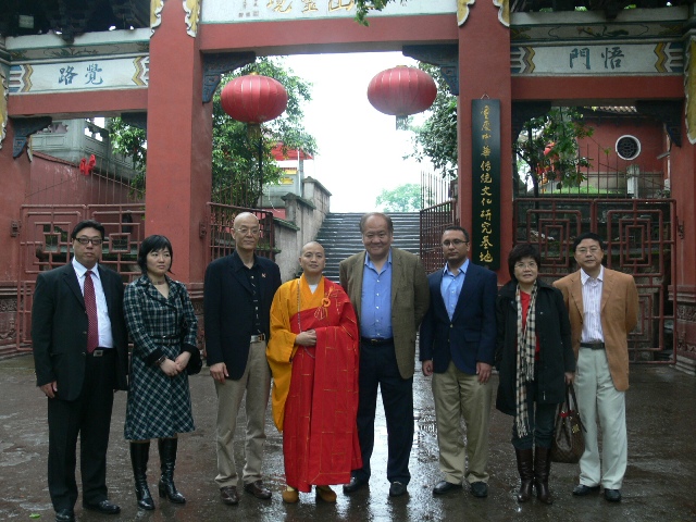 在道坚法师的陪同下,各位领导参观了重庆华岩寺的佛教图书馆、佛教艺术馆、佛教博物馆、以及各个殿堂。法师各位来宾介绍了重庆华岩寺的佛文化建筑、弘扬佛教文化的相关理念。大家由衷地赞叹重庆华岩寺对中国传统文化的弘扬与传承精神。