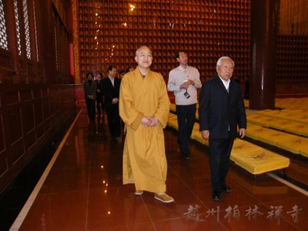 2009年4月15日下午,全国政协副主席杨汝岱在河北省政协副主席秦朝镇、石家庄政协副主席朱增海、赵县县委书记罗二虎等陪同下,到河北省石家庄市赵县柏林禅寺视察,受到柏林禅寺方丈明海法师的热情欢迎。