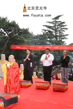 2009年4月28日,北京灵光寺在灵光寺佛牙舍利塔举行第三届春茶供佛斋僧甘露法会。
