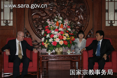 4月28日,蒋坚永副局长在国家宗教事务局会见了世界宗教和平会议秘书长威廉・温德利一行。