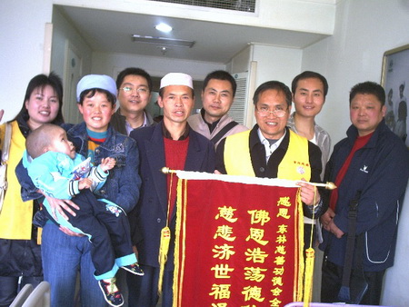 当战成父亲将另外一面锦旗赠送给东林慈善功德会陕西联络处所有志愿者时,每一张面孔都笑靥如花,随喜赞叹各位善心人士对小战成的帮助。
