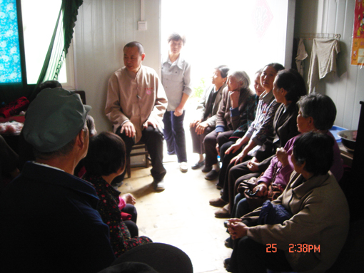 慕名而来的罗汉堂念佛小组的20位老人,在东林慈善临时办公处——邬兴凤老人家,与工作人员交流心得。并探讨佛法后,看病求医。