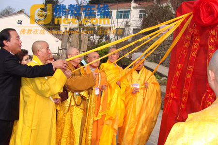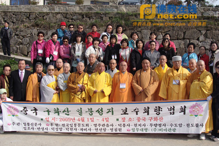2009年4月2日上午,由韩国佛教宗正协议会理事长智山法师率领的50位韩国法师和居士代表到安徽九华山,在修复保养一新的“地藏菩萨仰赞碑”前举行了简朴的保修揭彩仪式,九华山佛教协会会长慧深法师、副会长圣富法师、副秘书长开豪法师与佛教协会众法师一同参加了揭彩仪式。