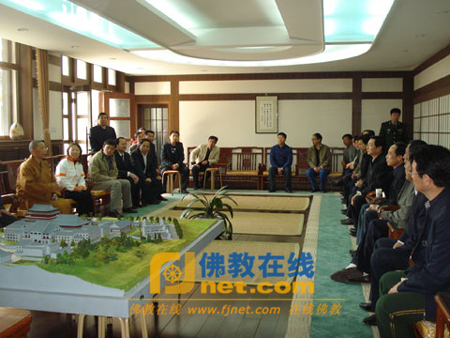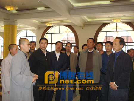 在隆严法师等的陪同下,李晓全司长一行参观了戒学部、五观堂、念佛堂、藏经楼及法堂等处,并听隆严法师详细介绍了普寿寺的修学情况和理念。当听到普寿寺的“三加一”僧伽教育工程介绍时,李晓全司长一行表示非常的赞赏。